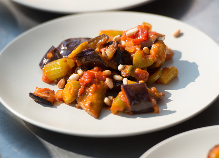 - Caponata Auberginen-Gemüse in agrodolce mit Sellerie, Kapern und Oliven