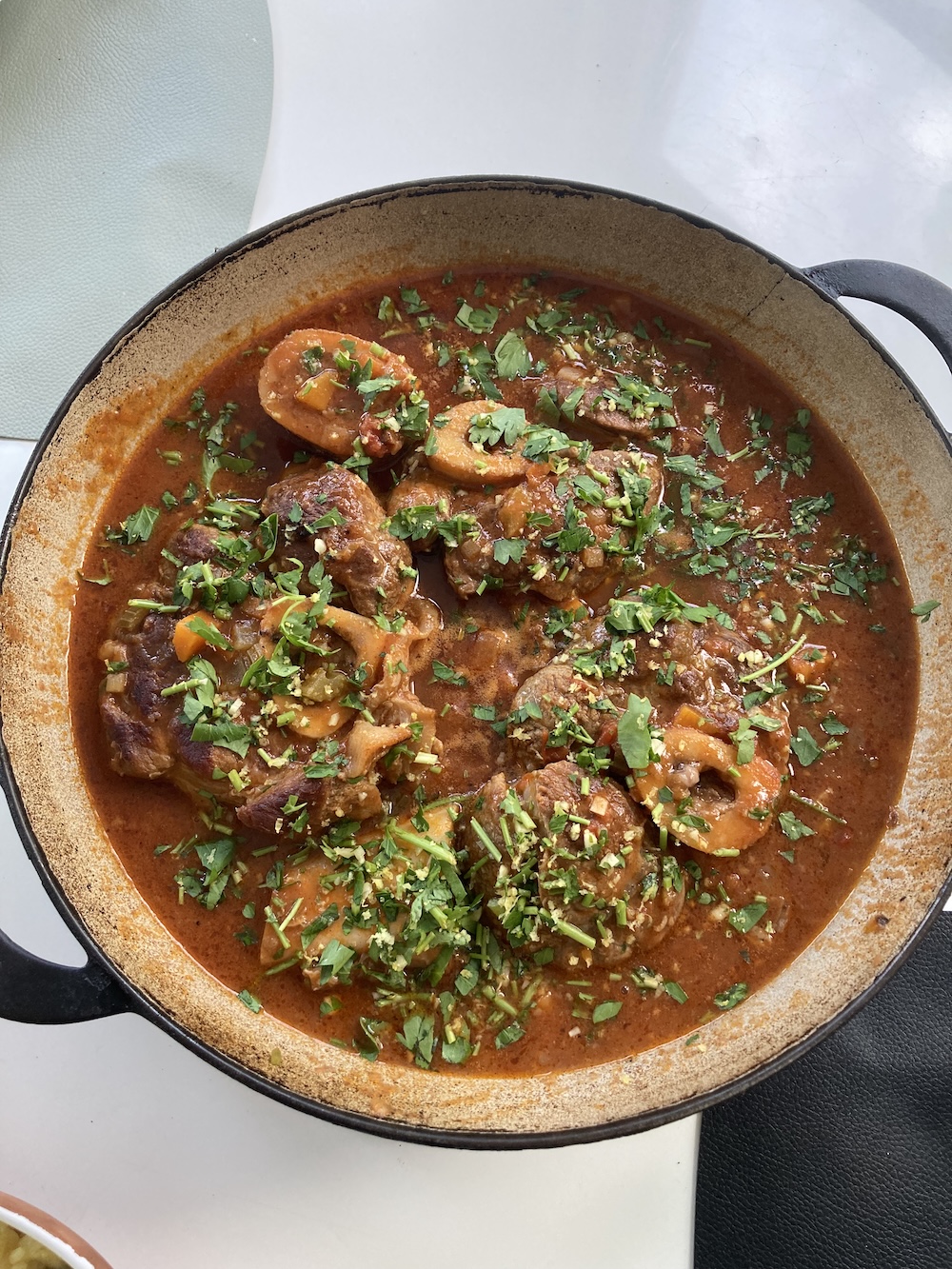 - Ossobuco e risotto alla MilaneseGeschmorte Kalbshesse und Safranrisotto